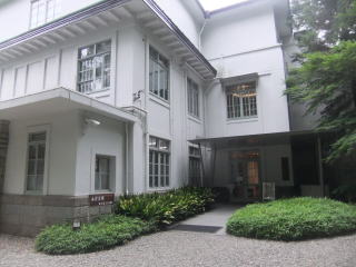 この松聲閣(しょうせいかく)は、江戸時代には旧熊本藩細川家下屋敷(殿様や奥方の住む本邸ではなく、別荘として使ったり、国元からの荷揚げのために水辺に造った蔵屋敷=ネット情報から)のあったこの地で、明治の頃に細川家の学問所として使用されていたそうだ。