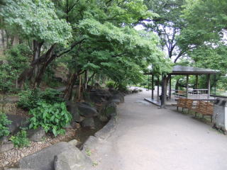 さらに進むと、その池に注ぐ小さな流れの傍らに四阿がある。
