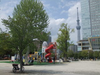 歩く距離を増やすため、隣の錦糸町で電車を降り、1区画北に歩くと「錦糸公園」。