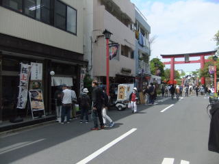 すぐ先の路地の入口に亀戸天神の鳥居が建ち、その路地には参拝客相手の蕎麦屋などの店が並んでいる。