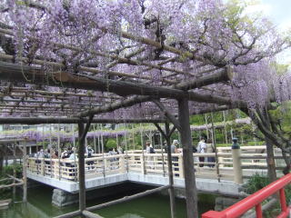 話を散歩に移すと、一昨日、近くで買い物の途中、小さな藤棚の花が咲いていたので、今日はフジの本場の亀戸天神辺りを歩くことにした。