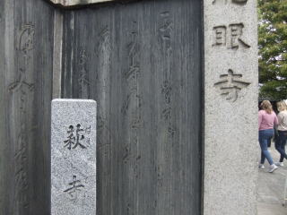 山門には、右には松尾芭蕉の「濡れてゆく 人もおかしや 雨の萩」