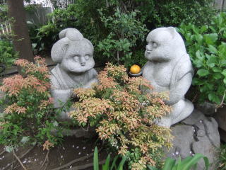 池の畔にはなぜかタヌキの夫婦像がミカンを供えられて「もう、夏が近いね」とか話して(?)いる。