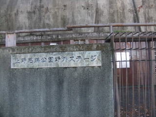 池を少し回ったところで、今まで気づかなかった人工の小さな滝と水路に出会い、その先で、やはり気づかなかった「上野恩賜公園野外ステージ」を発見。