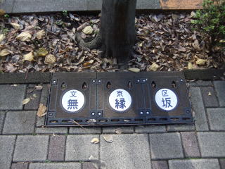 細い路の左右の歩道に「無縁坂」と書いた鋼板が敷いてあり、説明板も立ててある。観光ポイントのひとつになっているようだ。