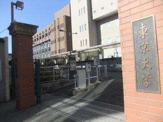 坂を上り切ると東大の鉄門。それを入ると東大の附属病院があり、多くの人が行き来している。