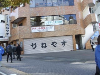 前にも書いたけれど、新たな写真を加えておくと、一階の江戸時代そのままの名前の「かねやす」の店舗はシャッターが降りて、お休みの様子。おかげでシャッターに大きく書いた「かねやす」の字を見落とすことはない。