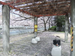桜見物の船は、川から上の桜を見上げるため、屋根なしの船が普通(さっきの大横川でわかった)だから、出払っているらしい.