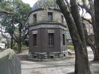 清澄通りを進むと東京海洋大学がある。道路を渡り、構内の1900年代初頭に作られ、今は有形文化財に指定されている2棟の観測台(赤道儀室)を塀越しに見なが