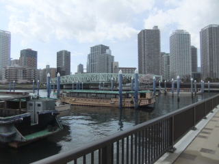 生物にしても人工物にしても、モノの究極的な姿というものは、芸術でいう「美」にも、直接につながっているのかも知れない、ともっともらしく言いながら、視線と進行方向を右に移すと、大きな柱に舫(もや)い、ゆるやかな隅田川の 流れにたゆたう遊覧船が数隻。