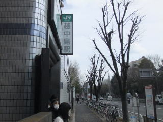 今朝は雨が降っていたけれど、昼過ぎには晴れ間も、との予報。曇り空の下、新検見川駅に向かう。駐輪場から道路に出るとグリーンベルト(中央分離帯)があり、植えられた桜並木は満開。