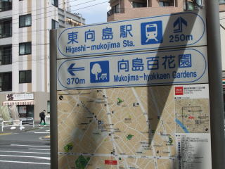 明治通りにぶつかって、交差点で「←向島百花園」の案内板を見て左折し、