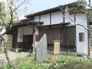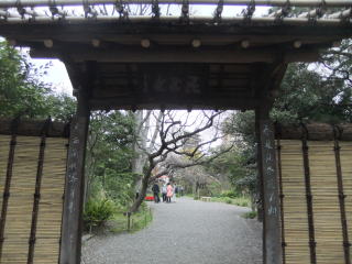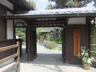 左右の門柱には詩人・大窪詩仏の「春夏秋冬花不断」「東西南北客争来」の聯(木版)がかかっている。おそらく、季節を問わず様々な花が咲き、各地からの客が争って鑑賞に来るほどだ、というような意味だろう(私の勝手な解釈)。