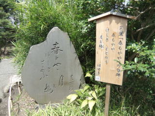 パンフレットによると、園内には30近くの句碑・石柱があるそうなので、みんなが知っている人の、主なものの写真だけ載せることにする。 これもパンフレットによると、この庭園は文化・文政の頃(1804‐1830)、骨董商を営んでいた佐原(北野)鞠塢(きくう)が、交友のあった文人墨客の協力を得て、花の咲く草木鑑賞を中心とした花園を開園したのだそうだ。