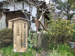 園内に入るとすぐ左手に芭蕉の句碑。「春もやや けしきととのう 月と梅」