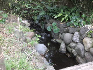 その先では、池に注ぐ石組みの小川から、せせらぎの音も聞こえてくる。