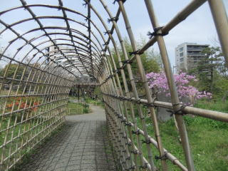 まだ竹柵だけのトンネルだが、9月下旬には30mほどの萩の花のトンネルに姿を変えるそうだ。