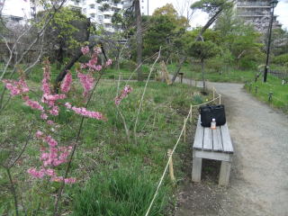 外周を4分の3ほど廻ったところには藤棚があり、5月頃来ればきっと紫の花と適度の蔭で、ランチ休憩に最適の場所になるだろうけれど、今日はまだ花も無く、時刻も少し早いので先に進む。