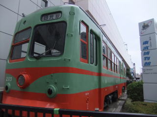東武博物館の入り口近くには、むかし東武鉄道を走っていた電車が展示されている。 駅前の商店街通りは「東向島