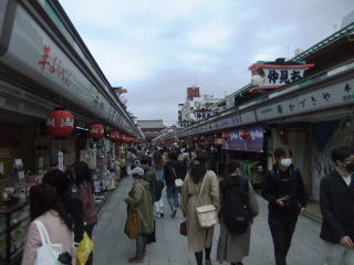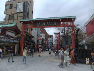 まあ、運動散歩の途中だから、便利かどうか、距離が遠いか近いかは気にしないで、取りあえず路地に出て、人の流れに乗って進むと「伝法院通り」に着いた。