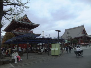 折角だから浅草寺を参拝し、藤棚の休憩所を見ると、そこそこの人が休んでいる。