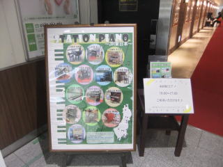 よくみると、水や炭酸水、ジュースのペットボトルのキャップを点描のように使って描いた絵で、作者は「幕張車両センター」、テーマは「BOSO BICYCLE BASE」(略称B.B.BASE ビー・ビー・べース)という電車の先頭車両の外観だ(この時は眼を細めてモザイク画を眺める)。