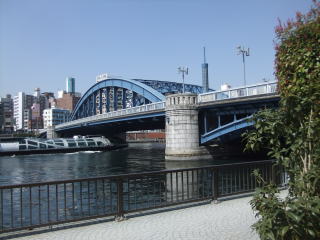 蔵前橋を過ぎると、その先には厩(うまや)橋が青いスマートな姿を見せている。