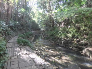 小川に沿って遊歩道が整備されていて歩きやすい。