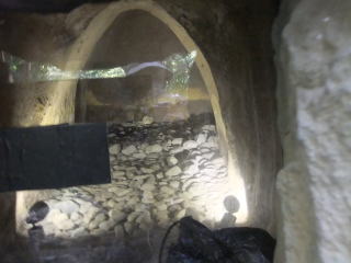 「3号横穴(おうけつ)」と名付けられた古墳には内部に照明が置かれている。これは奈良時代の、土地の有力者の墓だそうで、奥行きは13メートル。