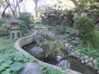 昼食後、再度石段を下って川に出て対岸を下ると「日本庭園」の表示があるので、右手の坂を上ってみる。