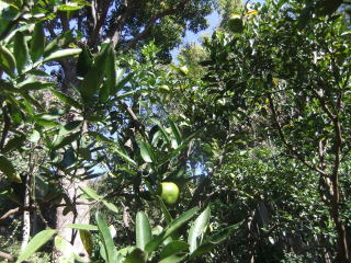 小さな山水もあり、大きなまん丸い緑の実をつけた木が植えられたミカン園(散歩の女性たちは「ポンカンかしら」と言っていた)や、竹林があり、素朴な庭園に心が休まる。