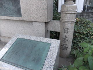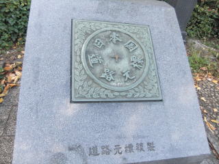 橋を三越側に渡ると、日本国道路原標(の複製)がある。原版は車道の真ん中にあるので、歩道には複製を置いてあるとのこと。