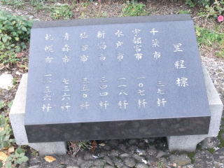この元標の傍らに、主な地点の距離表もある。 ちなみに、私の住む千葉市は日本橋から37粁(km)。