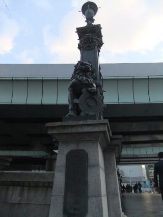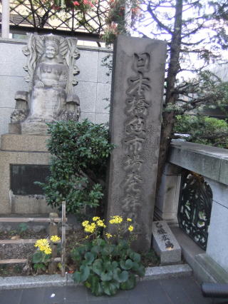 向かい側には日本橋に魚河岸があったことを記念する「日本橋魚市場発祥の地」の記念碑もある。